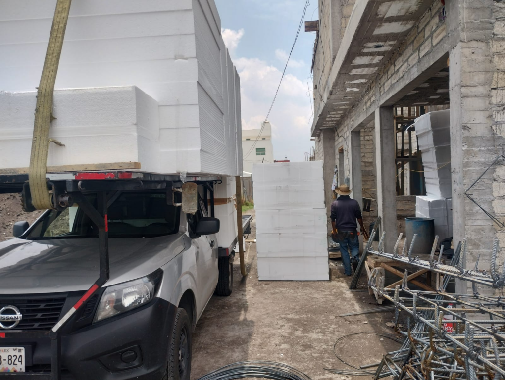 Este material funciona como un molde perdido que, una vez instalado y colado con concreto, permanece en la estructura, brindando aislamiento térmico y acústico.
