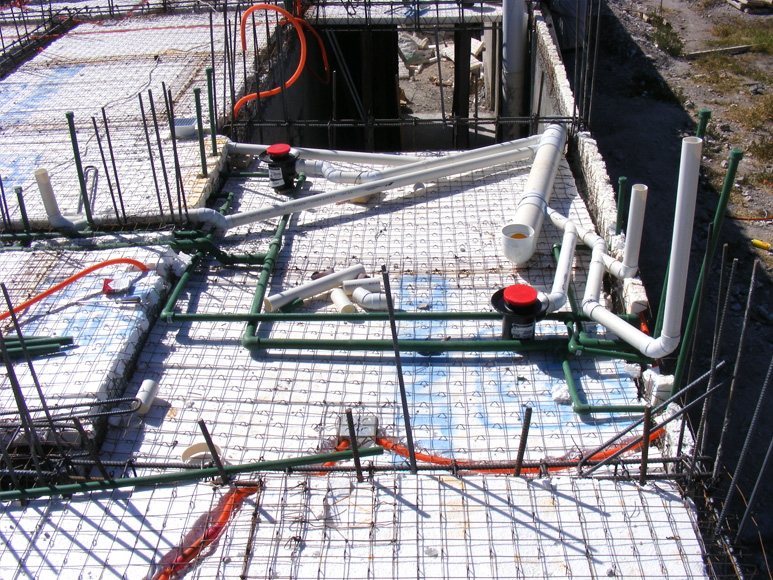 Una vez posicionados, los paneles se sujetan con mallas de acero y se recubren con mortero proyectado, asegurando una integración perfecta entre los elementos.